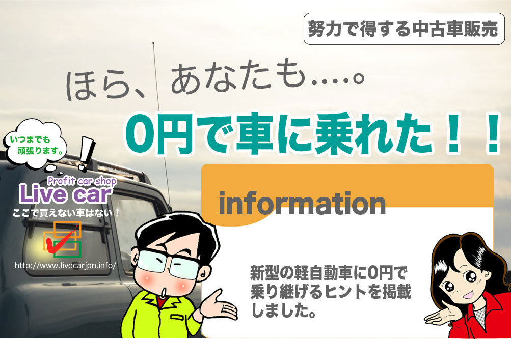 新型の軽自動車に0円で乗り継げるヒントを掲載しました。 information |